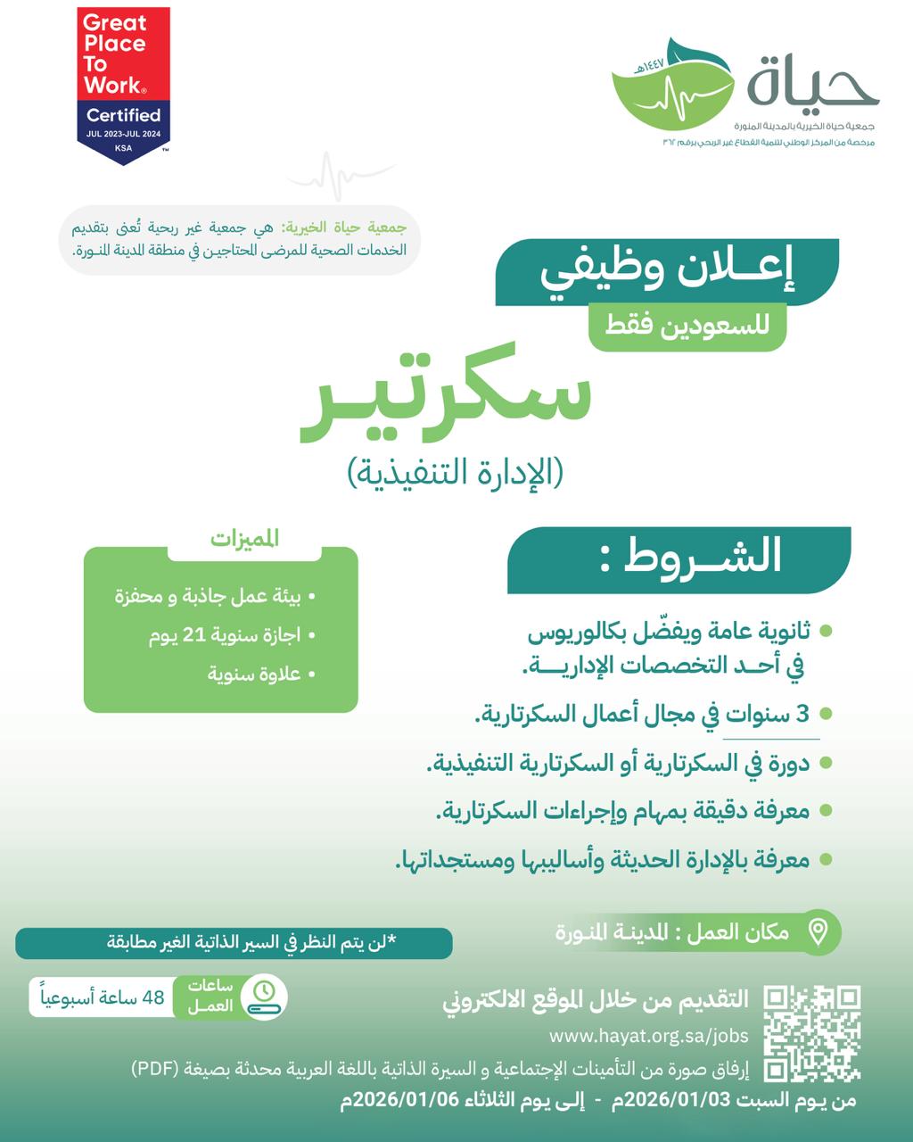 ثانوية عامة ويفضل بكالوريوس في أحد التخصصات الإدارية.